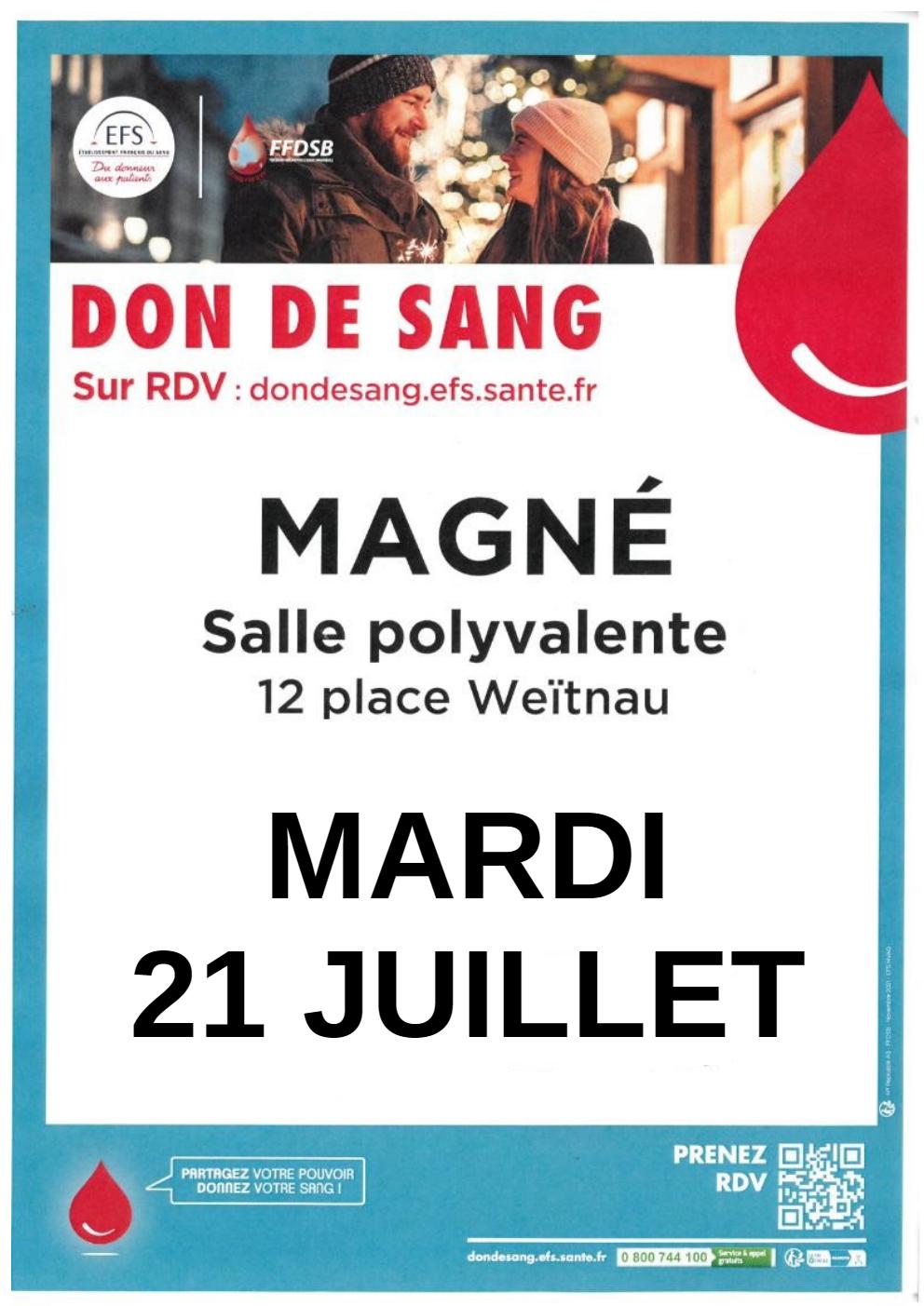 Collecte de sang Salle polyvalente de 16 h à 19h