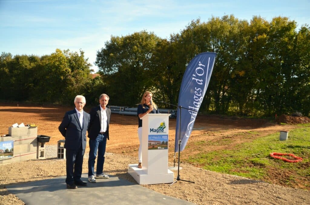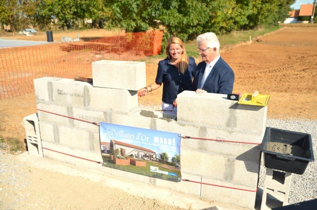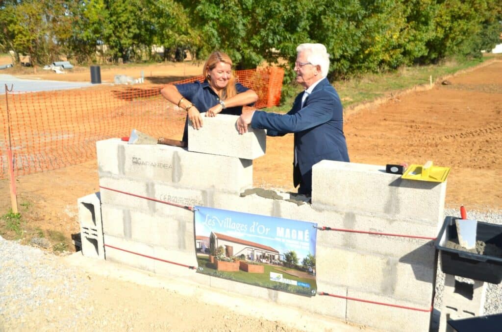 Le 1er octobre 2025, nous avons eu le plaisir de poser la 1ère pierre de la future Résidence Seniors en présence de Madame ESTOURNET, Présidente Directrice Générale des Villages d’Or et de leur architecte.